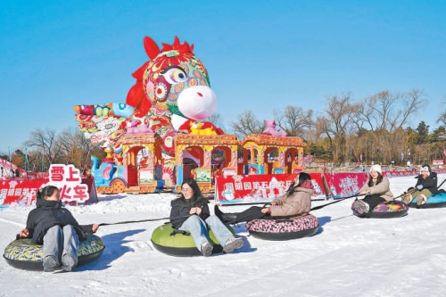 昨天,市民游客在圆明园体验冰雪乐趣。北京日报记者 王海欣摄